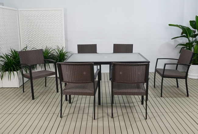 Carina 7 Pcs Metal & Plastic Slats Dining Set A